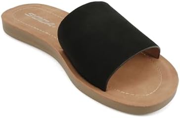 Soda Shoes Efron-S Women Flip Flops Basic Plain Slippers Slip On Sandals Slides Casual Peep Toe Beach