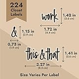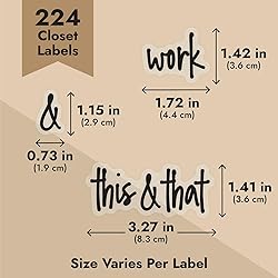 Elegant Closet Organization: The Talented Kitchen Closet Labels enhance your closet organization with 224 preprinted, adhesive labels. Perfect for wardrobe labels and closet dividers, these labels ensure each item has its own designated space Durable and Water-Resistant: Crafted from premium clear vinyl, these labels resist water, offering longevity and resilience for clothing bins and linen closet organization. They maintain elegance in diverse conditions, suitable for any closet storage labels Versatile Label Set: This comprehensive set includes names for various clothing items, sports gear, and accessories. With wardrobe labels and labels for baskets in closets, you can streamline your organization process with ease Clear Script Design: Featuring an attractive black script on clear backing, these labels offer a stylish touch to your organizing efforts. Ideal for storage cubes and cloth boxes, they ensure easy readability while enhancing the aesthetic of your space Comprehensive Label Solutions: With labels for clothing like jeans and printed labels for organizing, this set offers flexibility for personalizing storage systems. They are suitable for both bedroom labels for organizing and closet label stickers