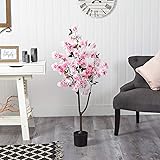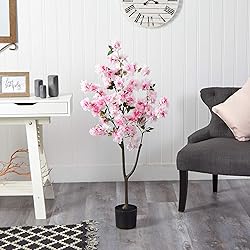 HOME DECOR ACCENT: A beautiful lifelike plant that is the perfect accent for any room or space, allowing for year-round greenery. Enjoy the wonders of the majestic spring awakening with this Artificial Cherry Blossom Tree. Incredibly lifelike pink cherry blossom flowers adorn a slim, brown trunk in a rhythmic melody of foliage for a full look that will instantly transform your home into the best of Japan. The flowers have shades of white and are accented by green leaves for a feminine touch. Standing 4' from a nursery planter, curate in tight areas CRAFTED OF QUALITY MATERIALS: Our designers have years of experience in the live plant industry; Nearly Natural fake plants, trees, and other artificial greenery are inspired by nature and crafted from premium materials to mimic the outdoors DIMENSIONS & SIZE: Product Dimensions: 23 in. W x 6 in. D x 48 in. H ; Nursery Pot Dimensions: H: 5 In. W: 6 In. D: 6 In. ; Measurements are calculated from each furthest outstretched dimension EASY TO MAINTAIN: Bendable branches and stems allow for easy reshaping to reach the desired fullness and shape. To ensure your artificial trees and faux plants always look fresh, dust once a month with a feather duster VERSATILE DECORATION: Incredibly lifelike faux cherry blossom tree ; Bring pink foliage to spaces in need of life ; Perfect for compact spaces ; Housed in a nursery planter