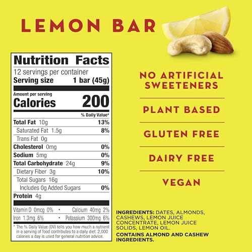 Larabar Lemon Bar Fruit and Nut Bars, Gluten Free and Vegan, 19.2 oz, 12 Ct