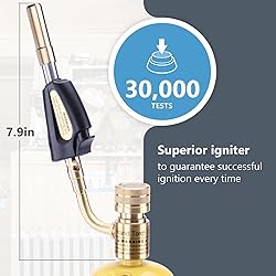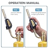 Secure Piezo Ignition System: Built-in igniter enables instant startup with a press, reducing accidents and ensuring worry-free use in propane torch tasks Adjustable Flow Control: Equipped with a precision valve, this map gas torch head provides smooth flow control for various soldering, brazing, glasswork, and heating jobs Universal CGA600 Connection:Compatible with MAP gas, MAPP, and propane cylinders. This torch kit fits most bernzomatic, portable gas tank, and standard blow torch systems Adjustable Flow Control: Equipped with a precision valve, this MAP gas torch head provides smooth flow regulation for various soldering, brazing, glasswork, and heating tasks Compact & Lightweight Design – Weighs only 432g and designed without a hose, this hand torch is for one-hand use in tight spots, ideal for DIYers and professionals