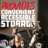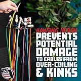Compact Cable Organizer: Keeps audio and computer cables neatly stored on a mic stand Protects Cables: Hanging design prevents over-coiling and kinks for longer cable life Versatile Storage: 32 cable slots with alternating 5-9mm spaces accommodate various cable sizes Universal Mic Stand Mounting: Attaches directly to standard 5/8”-27 mic stand threads Durable & Secure: Rugged steel construction with a black powder-coated finish