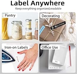 Portable and Mini Label Makers: Label maker machine with tape weighing only 180 grams (0.39 pounds), and has a cute, compact design that's easy to carry and store. so you can slip it into your pocket, school bag, and print labels and stickers on the go to keep your life and work organized Ideal for Home, Office and Small Business: Bluetooth label maker utilizes thermal and thermal transfer technology to enjoy high-definition printing without ink or toner. Mini label printer are BPA-free can make brightly colored paper labels, labels are waterproof, oil proof, scratch proof and tear proof, in addition to support printing on ribbon labels, customize different gift packages for your friends with different holiday designs for more uniqueness. Ideal for kitchen, party, pantry, garden, garage, tools, home and office organization. (Tip: When replacing new labels, please pull out the paper about 5 mm to avoid paper jam) Bluetooth Connectivity for Fast Printing: Label makers compatible with IOS & Android Phones, connects your mobile phone easily,you can download the "Print Master" app, from Google Play or App Store. The app provides 11+ languages, 25+ fonts, 12+ frames, 1000+ symbols, and more to print a variety of time, text, numbers, graphics, symbols, logos, barcodes, QR codes, border, and create personalized labels with ease. P12 label maker with built-in cutter for easy label cutting, supports printing of 1-3 lines of text and small spacing of labels to avoid label waste. The label templates you create can be saved in the application for next time printing Wide Application: Small label maker is suitable for home, organization and professional field. At home, it can help you organize your kitchen, food labels, cosmetic labels, time and date labels, jewelry labels, jar labels, plant labels, clothes, for personal items; in the office, it can manage laptop labels, file sorting labels, reminder labels, and other supplies sorting and organizing; at school, it can help teachers and students to mark classroom items, personal items, and name labels, and it can also be used to label wires and cables. Ribbon label maker is a great helper for home, life and work efficiency 2 modes of power supply: The P12 label printer can be powered by USB plug-in (Tip: The USB cable needs to be connected to the socket all the time to be effective) or powered by 6 AAA batteries (batteries not included in the package), meeting the needs of mobile office and long-lasting battery life, thermal printing can achieve 300dpi high-definition printing without ink or toner, compatible with a variety of standard sizes of thermal label paper, and ribbon labels, which is ideal for personal handicrafts and gift making. The package contains 1* label printer, 1 roll of free label tape (12mmx4m), USB cable and instruction manual