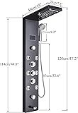 FUZ Contemporary Shower Panel Tower System Stainless Steel 6-Function Faucet LED Rainfall Waterfall Shower Head + Handheld Sprayer + Rain Massage Body Jets + Tub Spout, Black.