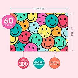 Sweetzer & Orange Hello Postcards Pack (60 Greeting Slips) – 4x6 Gratitude for Kids & Adults, 300gsm Writing Sheets. Blank Greeting Cards, Smiley Face Welcome Letters for Sending Cheerful Wishes