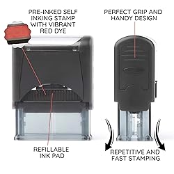 - Self Inking Rubber Stamp, Refillable Red ink Preinstalled - (9/16" x 1-1/2")