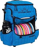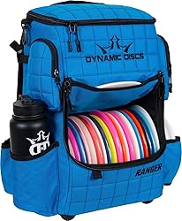 - "Dynamic Discs Ranger Disc Golf Backpack – The Ultimate Backpack for Disc Golfers The Dynamic Discs Ranger Backpack is the ideal choice for disc golfers of all levels, offering a blend of versatility, durability, and organization. With the capacity to hold up to 20 discs in the main compartment and two putters in the signature side pocket, the Ranger Backpack is ready for any round, whether you’re playing casually or in competitive tournaments. It also includes ample storage space for your cell phone, accessories, drink bottles, and more, ensuring you have everything you need for a great round. The top pocket is generously sized, perfect for holding extra layers of clothing. Designed for maximum convenience, the Ranger Backpack features smart organization. The ""On-Deck"" putter pocket offers quick access to two putters, while the removable lightweight disc divider helps keep your discs organized and protected from the elements. The bag also includes a designated bag tag attachment loop, water bottle holders, and an exterior towel clip for easy organization and clean storage. The large main storage compartment offers space for essentials like a stool, umbrella, and more. Made from durable 600D poly and 400D dobby nylon oxford fabric, the Ranger Disc Golf Backpack withstands tough weather and daily wear. Its water-resistant bottom with reinforced feet keeps the bag off the ground, ensuring it stays in great condition. The adjustable straps and molded back panel ensure all-day comfort during long rounds, making it the perfect choice for both casual golfers and pros. With high-end quality and a durable design, the Dynamic Discs Ranger Backpack is built to last and perform."