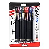 Pentel EnerGel Kuro Liquid Gel Pen, (0.7mm), Medium line, Assorted Ink, Pack of 8 (BL437R1BP8M)