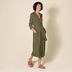 RELAXED FIT: Relaxed, comfortable fit through the body and sleeves. COTTON WAFFLE KNIT: This soft, lightweight cotton blend waffle knit is cozy, breathable and highly absorbent, providing all day comfort year-round. FULL-LENGTH WAFFLE ROBE: This classic waffle robe is a wardrobe essential. Perfect for bathing, layering over your pajamas, lounging at home, or relaxing at the pool. DETAILS: Features modern trim framing around the front placket, sleeve cuff, and top edge of pocket, adjustable belt with inside waist tie to keep your robe in place, and front patch pockets to hold your small essentials.