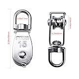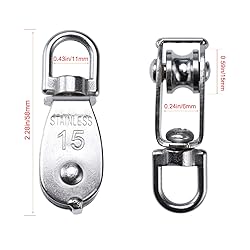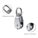 - Feature:A Pulley Block is a kind of hoisting tool,Designed for hanging weight things to lighten load.Pulleys are used to change the direction of an applied force.360 degrees rotation to prevent rope from knotting for convenient use.With swivel hanging eye ring on the top.Made of 304 stainless steel,anti-rust, corrosion resistance,strong and durable.Widely used in canoes, factories, construction, shipping, mining, household.Specification:Type: Single pulley blockSize: M15Color:SilverMaterial:304 Stainless SteelWheel Diameter: 15mmWheel Width:6mmRotating Ring Width:11mmTotal Height: 58mmMax Load: 35kgSpecification:Package Included:3 x M15 Single Pulley BlockCustomer Service:If you have any question, please feel free to contact us at any time,we are always standing by to solve any of your problems.