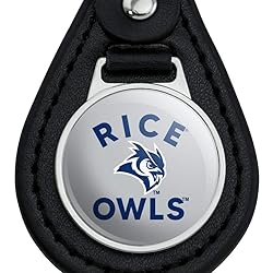 - About The Product: This Rice University keychain key fob is leather and metal, the Rice University design is resin topped and mounted on a sophisticated black leather backing. The silver plated hardware and key ring give it that extra touch of class. The Rice University keychain is approximately 1.5" (3.8cm) x 2.5" (6.4cm) in size, and the design is approximately 1" (2.5cm) in diameter. About The Design: Boasting a 300-acre tree-lined campus in Houston, Rice University is ranked among the nation’s top 20 universities by U.S. News & World Report. Rice has a residential college system, which supports students intellectually, emotionally and culturally. Developing close-knit, diverse college communities is a strong campus tradition, which is why Rice is highly ranked for best quality of life and best value among private universities. Show your support with this official Rice University product!