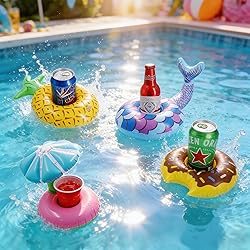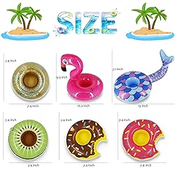 12 Adorable Shapes + 1 Air Pump. Premium PVC, quality, odorless and reusable. Easy to inflate and hold up well. Hold the drinkings floating on the water. Add great fun to your summer parties.