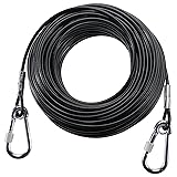 - Feature:High quality material,rustproof,strong and durable.Hooks are used at both ends,It is very simple to use.100FT length that let your dog move around freely.Perfect for family pets that spend time in camping,Park,Yard or other outdoor activities.Specification:Material:Steel + Vinyl CoatingColor: BlackDiameter without the vinyl coating:1/8 Diameter with the vinyl coating:3/16Length: 100FTMax suitable dog weight: 300 pounds Package Included:1 x 100FT dog tie-out cableCustomer Service:If you have any question, please feel free to contact us at any time,we are always standing by to solve any of your problems.