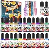 Epoxy Resin Pigment - 24 Colors Liquid Translucent Dye, Highly Concentrated for DIY Jewelry Making, Paint, Craft - 6ml Each, with 6 Colors Resin Glitter