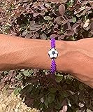 SOCCER JEWELRY- Unisex soccer charm bracelet SOCCER BRACELET -Purple Braided Cords Weaved together with black and white Soccer Charm ADJUSTABLE- Easily Adjusts to Fit your Wrist 5" to 8" fitting most wrists sizes SOCCER GIFT - Looking for an inexpensive gift for a special soccer player or fan in your life? Our parricides are the gift for Soccer Players & Soccer Teams for birthday, end of season, tournament, Christmas or just because Our mission is to help athletes show team spirit with sports accessories. We pride ourselves on the integrity and quality of our products and firmly stand behind all that we sell. If you are not 100% satisfied with your purchase, please contact us so we can make it right
