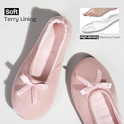 Silky Satin Upper: These ballet bedroom slippers are made from chic satin. They will offer ultra coziness for your tired feet. The elastic back will help you fit better Plush Coral Fleece Lining: Soft fleece lining wicks away moisture and keeps feet comfortable and dry all year long. These ballet slippers are not too warm and not too cold, which are suitable for spring, summer and fall Supportive Memory Foam: Our ballerina slippers' unique 60D memory foam offers your feet more support and relieves pressure on your feet after you get back home Flexible Rubber Sole: Durable rubber soles will give you more security when you walk on the wet floor in the bathroom or kitchen. You can easily put the women’s house slippers in your bag when traveling Size & Color Options: Hand- and machine-washable fabric makes our bedroom slippers easy to get rid of stains. You can choose your favorite color from black, gray, pink, purple, white, leopard print and navy blue. We also provide 4 sizes for you to choose from (size 5-6, size 7-8, size 9-10, size 11-12). It's a great gift choice for your friends
