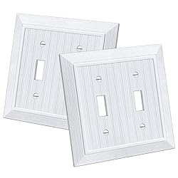 2-Gang toggle switch wall plate matches other CML classic wall plates to complete your decor Classic vintage wood grain design along with the nostalgia of classic toggle switches add a warm farmhouse feel to any house, apartment or even garage 2 Pack offers exceptional value and allows you to transform your whole space Impact resistant solid polycarbonate thermoplastic construction is durable enough for high traffic, commercial settings such as restaurants or hotels and easy to clean Standard 2 gang size 4.95”X 4.87”