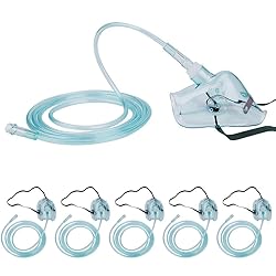 Healva 5 Pack Oxygen Mask with 6.6' Tubing and Adjustable Elastic Strap - Pediatric Elongated Size M