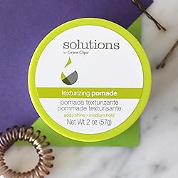 LIGHT TO MEDIUM HOLD HAIR PRODUCT: Solutions by Great Clips Texturizing Pomade is a light to medium hold styling aid while adding shine to your favorite hairstyle! ALL ABOUT THE DETAIL: This pomade adds texture and separation, meaning it is great for finish work, such as taming fly-aways, piecing, curl definition, or slicking back your hair! It won't make your hair dry, hard, or crunchy. PROVIDES NATURAL SHINE: With a natural shine, give your hair the glossy or wet look it needs without it appearing or feeling greasy. FOR BEST USE: Start with small amount, rub well between palms and work through slightly damp or dry hair! RECOMMENDED FOR SHORT, MEDIUM, AND LONG HAIRSTYLES: Our hair styling product is ideal for people with fine to medium textures of hair and who are looking for something to slick styles back, control frizz or for piecing.