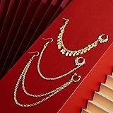 - Features: Wide applications: The nose hoop rings with chains can bring more highlights and charms to your daily and party dressing, suitable for carnivals, music festivals, wedding, Christmas party, stage performances, photo shooting, shows and other occasions. Create stylish looks: Our double-layer septum non piercing nose hoop ring dangle chain earrings are vintage and elegant, stylish and exquisite, suitable for daily dressing. Wearing them will highlight your appearance, make you look cool, charming, and stand out from the crowd. Specifications: Material: alloy Color: as pictures show Quantity: 3 pieces Package includes: 3 x Nose hoop chain rings with chain Notes: Manual measurement, please allow slight errors on size. The colors may exist slight difference due to different screens.