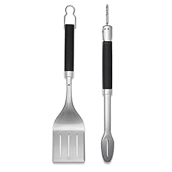 Includes Precision Grill Tongs and Spatula Designed for precision control and better handling of food Includes Precision Grill Tongs and Spatula 3-sided beveled edge design for easy approach and precision flip Hands-free locking tongs for ease of use and compact storage Durable, stainless steel construction Soft-touch handle designed for non-slip grip Dishwasher safe for easy cleaning Metal loop allows hanging storage 2-year warranty