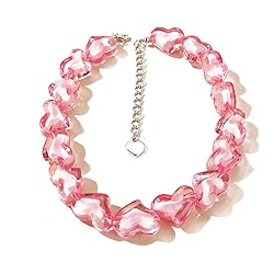 Fashion Heart Resin Beaded Star Acrylic Beaded Choker Necklace Multicolor Five Pointed Star Pentagram Love Peach Bead Collar for Women Girl Jewelry