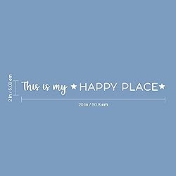 Vinyl Wall Art Decal - This is My Happy Place - 2" x 20" - Trendy Cute Inspirational Charming Lovely Quote Sticker for Home Bedroom Kids Room Playroom Nursery Daycare School Living Room Decor (White)