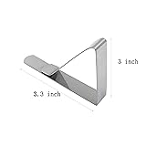 Material - These table clips are made of 18/8 stainless steel, strong but flexible enough perfect for keeping tablecloths & picnics in order. Size - Each tablecloth holder is approx. 8.2 * 7.5 cm, fits the table thicknesses below 7cm. Easy to Use - These tablecloth clamps are easy to install and take off, simply pinch the table clip and slide into place, and do not slip off the table even in high winds. Wide Uses - The tablecloth clips are suitable for home, parties, picnics, restaurant, weddings, buffets, etc. Package included - 24 pieces large stainless steel table cover clips.