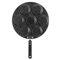 7 Grids Total: By adopting this aluminum cooking pan with 7 round holes, it allows you to make 7 fried eggs at the same time, convenient to use. Rivets Reinforced: The frying pan and handle is reinforced with rivets, which will be firm, not easy to fall off and safer to use. Stable for Use: Having been made of aluminum material, this multi egg frying pan is and wear evenly heated, which is sturdy for your long time use. Non Stick Coating: The inner of this omelette pan is treated with non-stick coating, which is easy for you to demold the food and to wash after use. Heat Handle: This egg frying pan has been equipped with an anti-scald and heat- handle, and it is very suitable for home, hotel and restaurant kitchen for daily use.
