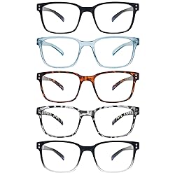 SIGVAN Blue Light Blocking Reading Glasses for Men Women Computer Spring Hinge Readers Square Frame Glasses 5 Packs (5C, 2.5)