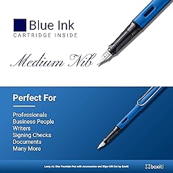 Lamy AL- Star Pen | Ocean Blue | Medium Nib | 5 Black Ink Cartridges, Z28 Converter and Wipe