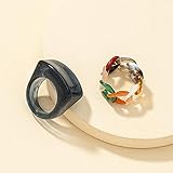 2/3Pcs Retro Thick Resin Transparent Acrylic Chunky Wide Face Unique Square Dome Knuckle Ring Colorful Chain Stackable Statement Finger Band Ring for Women Girls Jewelry Festival Gifts