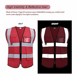 Safety Vests Bulk with Logos Custom (Optional): Available for custom your own design picture or text. (If image: Please upload your img: pixels greater than 1000x1000) Polyester General Purpose Safety Vest: Made of Class 2 Type R material meets ANSI/ISEA to keep you visible while work under daylight / low light conditions. Safety Vest with Reflective Stripes: 5 front pockets, including 2 big velcro pockets to put cell phone or other tools, 1 transparent pocket for card, 1 pocket for pen, 1 small velcro pocket for money or notes. Interphone is convenient to hang in the D-Ring. Sizes: Please check our size chart before you purchased. S: Chest 41 inch, M: Chest 45 inch, L: Chest 48 inch, XL: Chest 52 inch, XXL: Chest 55 inch. High visibility safety vest: Comfortable worn over winter clothing. Design for construction, security, climbing, traffic, walkers, runners, engineer, pioneer, surveyor, volunteer, men, women and etc.