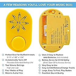 - A Few Reasons You will Love Your Friendly Songs Sound Module: Very Easy to use 'Grandparent-Friendly Setup' Teddy Bear Voice Recorder with playback is a small voice recorder for stuffed animals. Excellent Sound Quality Message Box allows your recording for stuffed animal to sound perfect. Tons of Uses like as a Build a Bear Voice Recorder, Recordable Storybook, a Santa Bear, a Bear Recording Voice, a recordable box for stuffed animals, or Sound Chips for Stuffed Animals. Amazing Recordable Gifts Idea gives you recordable sound module multiple messages for music playback device. This small sound voice recorder uses 3 Easy To Replace AAA Batteries for this voice box recorder for stuffed animal. Similar to a digital voice recorders with playback that holds over 2+ Hours of MP3 Audio Files, which is much better than the 3-minute recorder stuffed animal buttons products or the voice recorder for stuffed animals 60-seconds ones. The digital recorder works similar to a recordable button but instead, you simply transfer ANY MP3 audio file to the digital voice recorder, no re-recording is needed with this small usb voice recorder. And since the memory is forever, you'll 'Never Lose Precious Memories again. Put the mini voice recorder stuffed animal into a teddy bear with voice recording and press the sound button. It becomes a invite by voice recordable voice box for stuffed animal, or a recordable books for children, or a stuffed animal with heartbeat, or an animal sounds book. This toy voice box mini audio recorder is small. Just transfer to mini recorder the files with the included USB Data Cord similar to a digital voice recorder with USB. Easily Plays Multiple Message recorder sound box with the recordable buttons. Big Easy to Push the Button in the bear box for easy to operate audio recording device. Automatically Turns Off the toy recording device after 2 minutes of non-play. Unlimited Number Of Tracks the kids voice recorder allowed. The kid's voice recorder with playback lets you easily Add, Remove, or Change Tracks. Record your audio using your phone or computer and save as an MP3 file, you can not record directly to the sound module. Simply copy your MP3 files from your computer just like a simple flash drive. Compatible with Build-A-Bear stuffed animals.