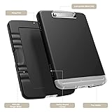 High Capacity: Storage clipboard built-in a paper storage box and a pencil case, large enough to hold up 200 sheets of A4 paper and 6 pencils. Allows to store most daily office supplies and keep them organized Portable Design: Clipboard box measures 14 x 9.6 x 1.4 In, 16 oz weight, Convenient to carry. Designed with anti-slip finger grips for easy grip, Round corners allow to store in bag Built to Last: Clip board with storage is made of thick plastic, high-impact, anti-fray and have a smooth surface to write on. Unique hinge-and-clasp system can withstand daily use and will not fall apart after millions of opens and closes Easy to Use: Allows for side opening like a book, Quickly accessing your office supplies is a breeze. There is a strong metal clip on the top that can hold your instant documents for easy reading and writing at any time Securely Closed: Unique latches is very rnduring, and strong enough to keep both compartments closed tightly. It securely holds your paper, pens and all office accessories, no more worry about falling pff or getting lost
