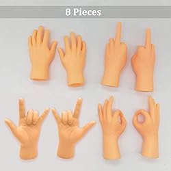 AQKILO Tiny Hands Mini Finger Puppets 8 Pieces, Left and Right Hand Set, Mixed Styles, Funny Party Favors and Novelty Toys for Kids and Adults