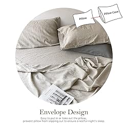 100% Pure Natural Flax With Pre Washed 【MATERIAL】100% Pure Natural Linen with Pre Washed, very soft, becomes softer after every wash. 160 ± 5% GSM (ATTENTION: There may be a little deviation because of the washing preshrunk process.) Certified according to STANDARD 100 by OEKO-TEX for environmentally friendly, responsible and sustainable fabric production. 【VALUE SET】KING SIZE - 1 x Flat Sheet: 108" x 102", 1 x Fitted Sheet: 78" x 80" x 14", 2 x Pillowcases: 20" x 40". Applied in a variety of occasions and uses: Your sweet home, anniversary/ wedding/ thanksgiving/ christmas gift/ present for your parent/ children/ relatives or your friends. 【CHARACTERISTIC】Unique breathable, cool feeling, sweating is not sticky; Good natural luster, not easy to fade, not easy to shrink; Heat conduction and moisture absorption is larger than cotton fabric. The wrinkly look is a unique texture of the linen fabric which is more natural and textured. 【USE INSTRUCTION】Machine washable, gentle cycle wash under 60℃ with similar colors. Do not dry clean. Do not use detergent that contains bleach or whitener. Tumble dry at medium heat. Iron on medium heat if needed. Linen fabric will become softer after every wash. 【DESIGN & CUSTOMER SERVICE】Mattress Cover is Deep Pocket design, the depth of the fitted sheet is about 14 inch. The elastic is all around the fitted sheet. We provide 24/7 customer service. If there's any problem with the product, please contact us, we will help you solve it within 24H.