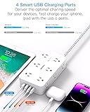 【Power Strip for All】 - This 5 ft power strip with 12 AC outlets and 4 usb ports(2 usb c) power everything on your desk. With built in Smart IC technology,the 4 usb port can auto detect and deliver appropriate current to your devices. There are 2 keyholes on back allows you can mount this extension cord onto the wall or furniture easily. The 45° angled flat plug fits perfectly in narrow spaces like behind a bookshelf, nightstand and does not cover the bottom receptacle of a duplex outlet 【 2.1 in Wide Spaced & Space-Saving】- The extension cord with 2.1 inches widely spaced in between outlets, larger than standard socket, fit big adapters without blocking each other. The compact power strip saves more space, make the table looks neat, suitable for the home, office, and college dorm room 【2 x USB C Power Strip】- Added extra 2 USB C ports for your devices, the USB C port can charge up to 5V/3A. USB-A ports can charge up to 5V/2.4A Max, all USB Ports Output is 5V/3.1A, 15.5W max which is 30% faster than other usb c charging station. With smart charging technology, it can auto-detects your devices and can reach faster charging efficiency, perfectly fit for your iphone, ipad, tablet etc 【Surge Overlaod Portection】 - The power strip surge protector built-in 900 joules surge protection for your phone, computer and other applianced from spikes and fluctuations. The on/off switch with integrated circuit breaker for overload protection of all outlets. It will automatically cut power to protect connected devices when voltage surge is overwhelming.(The surge protected indicator light on to show your devices are protected.) 【Multi Safety Protection】- RoHS, ETL Certificates. This power strip has overload protection, short-circuit protection, over current protection, over-voltage protection and overheating protection. Environmental protection and fire-resistance PC shell with flame retardant at 1382℉ makes it more durable and longer