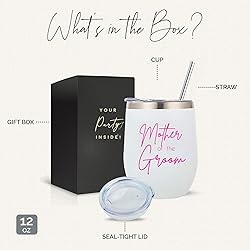 Your Dream Party Shop Mother of The Groom Gifts, Stainless Steel 12oz Wine Tumbler with Lid and Straw! Great Mother of the Groom Tumbler Or Mug