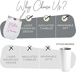 - Celebrate the Special Bond with Our 'Mother of the Groom 12 Oz Tumbler' As the wedding day approaches, the 'Mother of the Groom Tumbler' stands as a symbol of love and gratitude. This beautifully designed tumbler is more than just a vessel for her favorite drinks; it's a token of appreciation from the bride and groom, and a precious memento that will remind her of this special occasion for years to come. Elegant and Stylish: With its sleek design and elegant script, this 'Mother of the Groom Cup' is a fashionable accessory for any mother proud to celebrate her son's big day. Versatile Drinkware: Perfectly sized at 12 ounces, our tumbler is ideal for both hot and cold beverages, ensuring the mother of the groom can enjoy her preferred drinks at the perfect temperature. Enduring Quality: Made with durable materials, this tumbler is built to last just like the cherished memories of the wedding day. Gift-Ready: Whether it's a 'gift for mother of the groom' or 'mother of groom gift from bride', this tumbler comes ready to be presented as a thoughtful and loving gesture. Complete the Set: Pair with 'bride and groom tumblers', 'groom tumbler', and 'wedding cups for bride and groom' to complete the wedding party's ensemble, making the day truly unified and special. A Keepsake That Matters: Every time she sips from this tumbler, she'll be reminded of the joy and love that surrounds her son's marriage. It's not just a 'mother of the groom gift'; it's a thank you, a hug, and a smile all in one. It's a perfect addition to 'mother of the bride and groom gifts', ensuring both moms feel equally appreciated. Celebrate with Sophistication: The 'Mother of the Groom 12 Oz Tumbler' is an ideal companion for the wedding festivities and beyond. Whether she's getting ready on the morning of the wedding or relaxing post-celebration, this tumbler serves as a constant reminder of the love and respect the bride and groom hold for her.