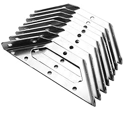 Package Content: 8 x Corner Bracket + Screws. Length: 143mm/ 5.6"; Width: 65mm/ 2.56"; Hole Distance: 33mm/ 1.3"; Thickness: 2mm. Premium Material: The Corner Bracket is made of 2mm thick stainless steel to ensure hard and durable enough. Triangle Supports Design: Strengthen right-angle corner joints to prevent compression damage. Ensure that the furniture is firmly connected. Application: Angle code corner joint designed for various supporting structures, suitable for shelf, cabinet, chair and so on.