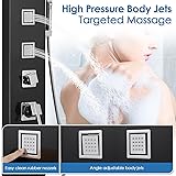 ROVOGO Shower Panel Tower System with LED Lights - No Battery Needed, Shower Column with Rainfall Waterfall Shower, Body Jets, Handheld Shower, Tub Spout and Temp Display, Black