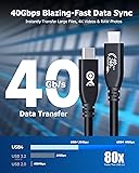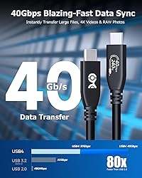 USB-IF Verified for Reliable Performance: The Cable Matters USB4 to USB4 cable is USB-IF Verified, ensuring compliance with the official USB4 standards for reliable and high-performance data transfer. This USB Type-C cable supports up to 40Gbps bandwidth, 8K video, and 240W charging, while also offering USB PD 3.1 Extended Power Range (EPR) for 28V/140W, 36V/180W, and 48V/240W power delivery. Unmatched Data Transfer Speed: This USB4 USB-C cable supports up to 40Gbps bandwidth for USB4 devices and is backward compatible with 20Gbps USB4 devices, ensuring smooth data transfer across a wide range of devices and applications. Backward Compatibility with USB 3.1 Cable: The USB C 4 Cable supports older USB C standards like USB 3.2, USB 3.1, USB 3.0, and USB 2.0 and is also compatible with USB C Thunderbolt 4 Cable, ensuring broad compatibility with all your existing devices. 8K & 4K Video Support with DP Alt Mode: This 8K USB-C cable supports DP Alt Mode, enabling 8K and 4K ultra-high-resolution video at high refresh rates. The USB C monitor cable is ideal for connecting USB-C devices to USB-C monitors or docking stations for gaming, editing, and streaming. 240W Power Delivery for Fast Charging: The USB 4 to USB 4 Cable supports USB-C PD 3.1 for up to 240W host charging. This 240W USB C cable is also backward compatible with Apple 140W USB-C power adapter, iPad Pro, iPad Air, and other 140W USB-C power adapters, offering fast and efficient charging.