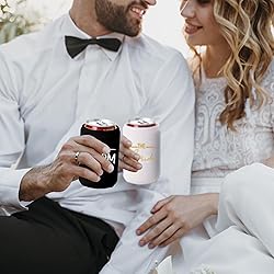 STYLISH DESIGN - Our package contains 1 "Bride" and 1 "Groom" Can Cooler! Perfect to post on Instagram and Snapchat! PERFECT CHOICE- Each Can Cooler has a decorative “Bride" or "Groom" On BOTH sides! Perfect for Wedding Gifts, Engagement Parties, or Couples Gifts! DURABLE & REUSABLE - Finished your can in less than a minute? No problem just easily pop it on to the next can and you're good to go! PERFECT FOR ANY PARTY - These Eco-Friendly and BPA Free cups are perfect for all parties! Made to last all day and night! The lucky couple can even take these home as party favors! PERFECT FOR ANY PARTY - These Eco-Friendly and BPA Free cups are perfect for all parties! Made to last all day and night! The lucky couple can even take these home as party favors!