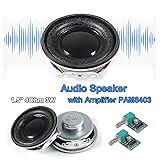 High-efficiency speaker DIY kit--Clear sound output, low noise, bring good listening experience. 5V power supply can be used, suitable for batteries or portable electronic products. 1.5" 4Ohm 3W Speaker--Diameter: 40mm; Height: 20mm; Rated power: 3W; Rated impedance: 4Ω; Sensitivity: 100 dB/W. With PAM8403 Amplifier Board--DC 5V digital power Amp module 2 Channel 3W+3W, easy and smooth to adjust the volume and control the power switch with potentiometer. Package Includes--2* 1.5" 4Ohm 3W Speakers + 2* PAM8403 Amplifier Boards. Note: 1. Do not apply power to the amplifier without speakers connected, this will result in damage to the amplifier; 2. Please make sure operating voltage less than 5.5V, or the amplifier will be damaged.