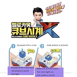 - About Product 1. Put the cube in the cube clock and turn it to use. 2. Put the cube pack and turn the clock to emit light 3. Insert the cube pack and turn the clock, animation sound and sound effects 4. Cube clock 3 functions-light / sound effect & voice / summoning beam 5. Easy to use with one battery *How to use 1. Equipped with a cube pack-When a cube pack is inserted, a light and sound will appear. 2. Cube Clock Action- Turning the clock fires a cabot summoning beam and sounds and sound effects 3. Cube Pack Separation-Turn the clock back and press the release button to separate the cube pack with an exit sound. Product Specification Essential tools: Use 1 LR03 AAA battery Components: 1 Hello Carbot Cube Clock, 1 Cube Pack (Chatan), 1 User Manual Material: ABS, PC, PVC, etc. Size: 16 x 15.5 x 10.7 (cm) * Children over 3 years old can be used