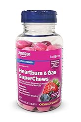 Amazon Basic Care Heartburn & Gas SuperChews Chewable Tablets, Fast-Acting Relief, Mixed Berry, 82 Count (Previously SoundHealth)