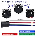 Mini Rotary Switch 3 Position 16mm 5/8in Selector Switch 3 Position Select Switch Knob 5A 250V ON Off 2NO 2NC DPDT Latching with Wire 2 Pcs UL Certification