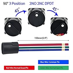 - Package include : 2* Selector Switch 2* Wire Connector Sockets What's the Wire Connector: With the wire connector, you don't need to solder the terminals, make installing very easy Saves the issue of soldering to the switch, and possibly melting it as well You can replace the switch anytime by just unplugging the switch from its socket What's Selector Switch Used for: Scope of application: punch, Automation equipment,Testing instrument and other circuit equipment.used widely to control the electronmagnetic Starter contactor,relay and other automaatic control electric circuits. What's Note: -The project you are going to be used for, don't let current go above 5 amps. Or the switch will get warm and to be burned out What's Customer Support: If you have any questions, feel free to contact us by E-mail any time. We get professional customer service staff and technician to help you Specifications: Head diameter: 18mm Mounting hole size: 0.63"" (16mm) Switch combination: 2 Position,1NO 1NC SPDT ; 3 Position,2NO 2NC DPDT Switch rating: 5A/250VAC Head shape: Round Cap Protection level: IP54