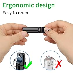 【Waterproof-Sturdy】: The pill holder has a rubber O-ring gasket on the screw cap made it airtight and watertight enough to keeps your pills inside safe and dry when you are on vacation, trip, camping or any outdoor activity.This small pill holder is made of good aluminum alloy instead of plastic, which fully protects the pills inside 【Easy to Carry】: This pocket pill box keychain set is the only 0.5 oz(15g). Each individual pill lanyard is equipped with a key ring at the top, we can easily fix them on the handbag or belt through the key rin when we go out, it will be a good assistant for you to travel 【Multi-function】: The pill holder keyring not only keeps your daily medication but it also able to keep your emergency money close while on the go, as well as store your notes, earplugs, toothpicks, spices or anything else that you would like to hide and protect 【What you get】:If you encounter any quality problems with our 1Pack Pill Box Keychain, please contact us